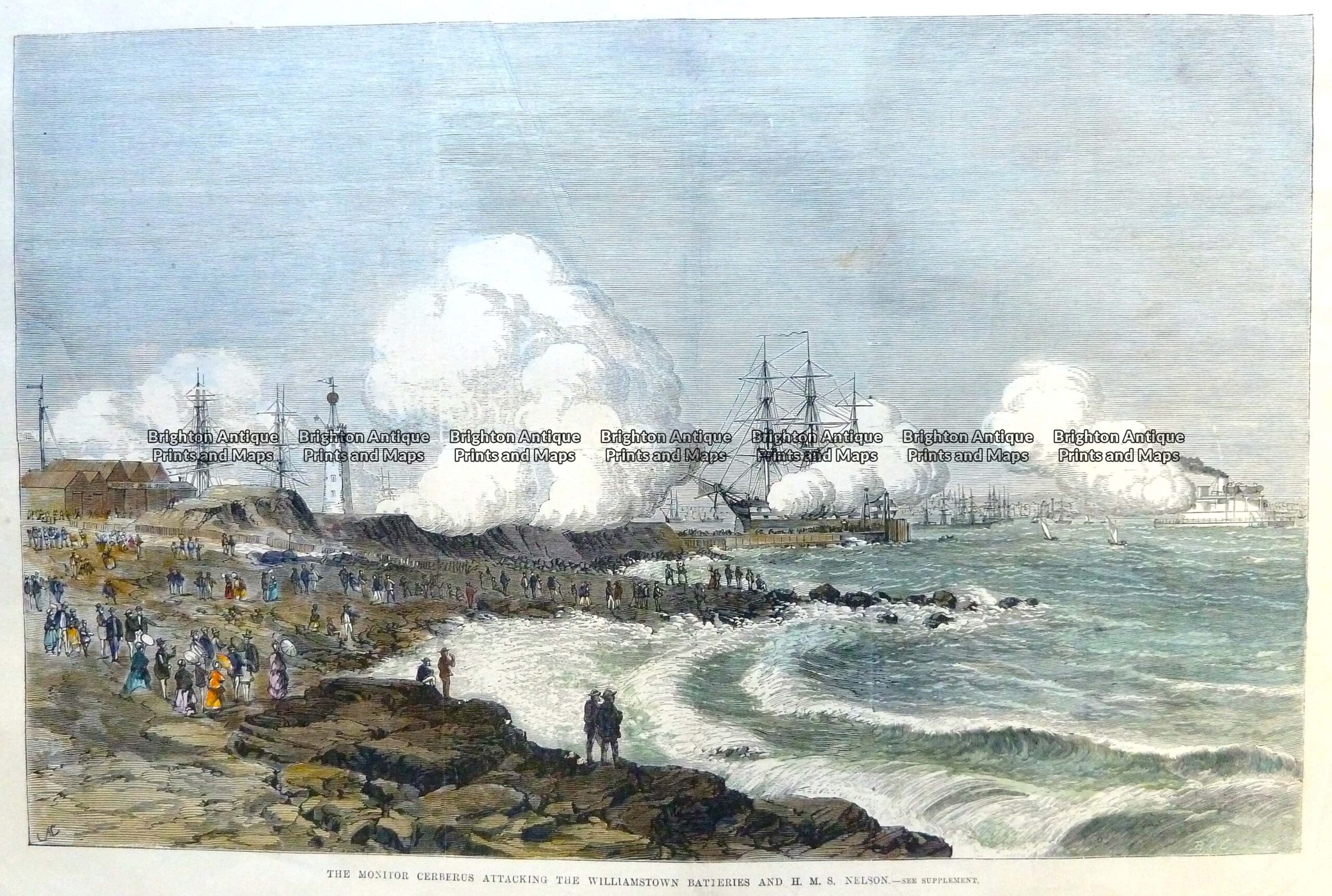 29-131 Cerberus attacking Williamstown batteries c.1875 Published December 6, 2015 at 2560 × 1723 in 29-131 Cerberus attacking Williamstown batteries c.1875 ← Previous Next →
